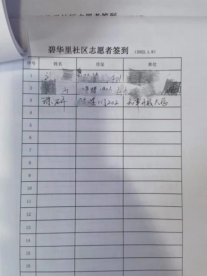 1月9日清晨开始,居住在南开区的部分教职工主动到各筛查点位、居住社区参加志愿服务。