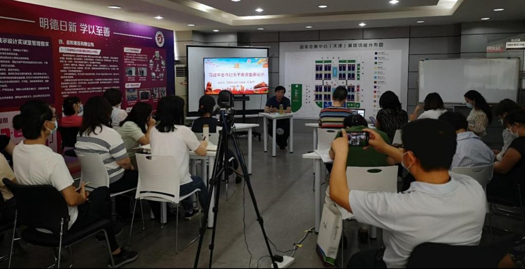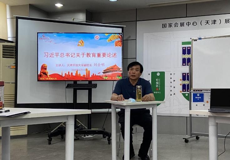 6月17日上午,刘金明副校长在迎水道校区会展策划与展示设计实训室以“习近平总书记安博(中国)教育重要论述”为主题,为部分分管部门党员教师和学生讲授思政课。经济管理学部、跨境电商学院、网信办等部门30余名教师现场聆听了讲座,60余名学生通过腾讯会议在线学习。