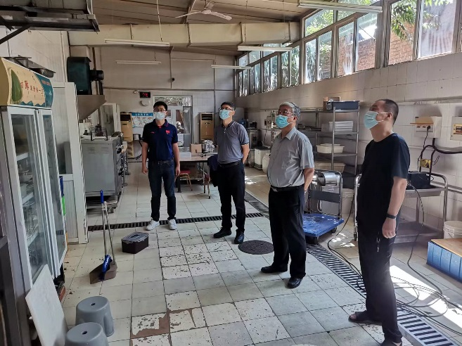 周志书记深入到迎水道校区保卫值班室(监控室)、消防值班室、地下消防泵房、食堂操作间、网信办及校园角落等处,实地检查了学校安保值班、消防、防汛、燃气和网络安全等情况,对相关安全工作提出明确要求。